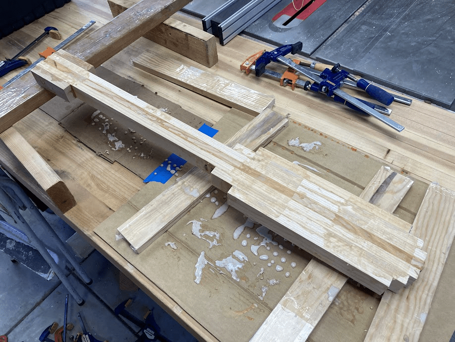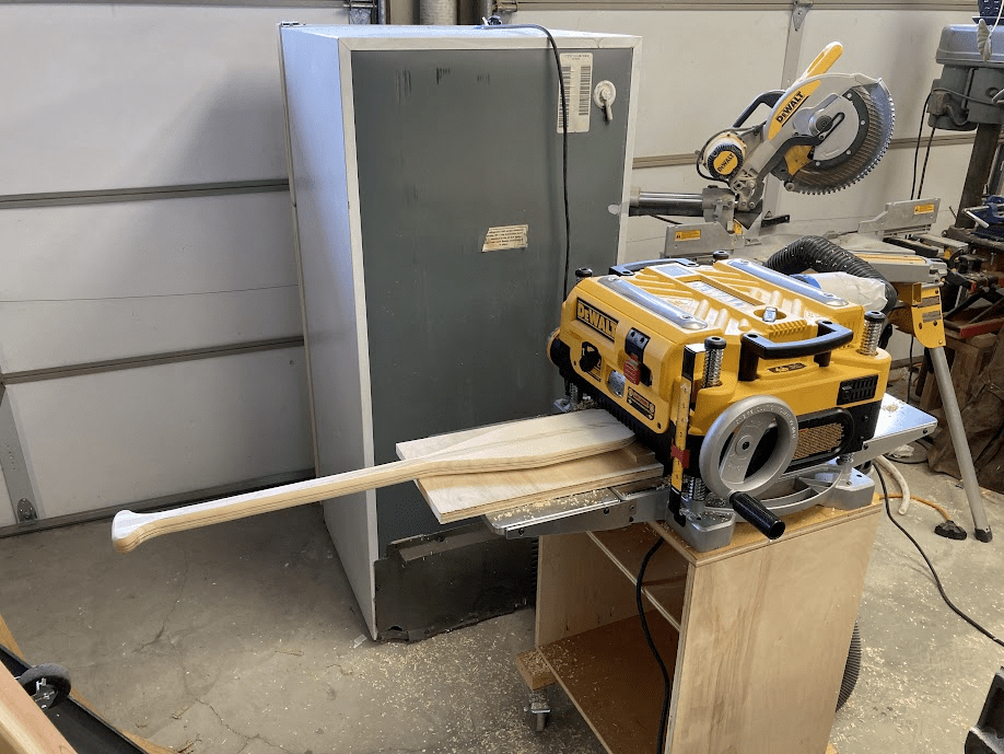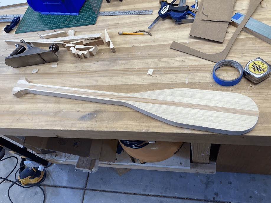 A mini canoe paddle I made for my son when he was 2 years old. It is made up of laminated layers of pine and fir, cut out with a jig saw and tapered with an angled jig in the thickness planer. Sealed with a few coats of spar urethane.