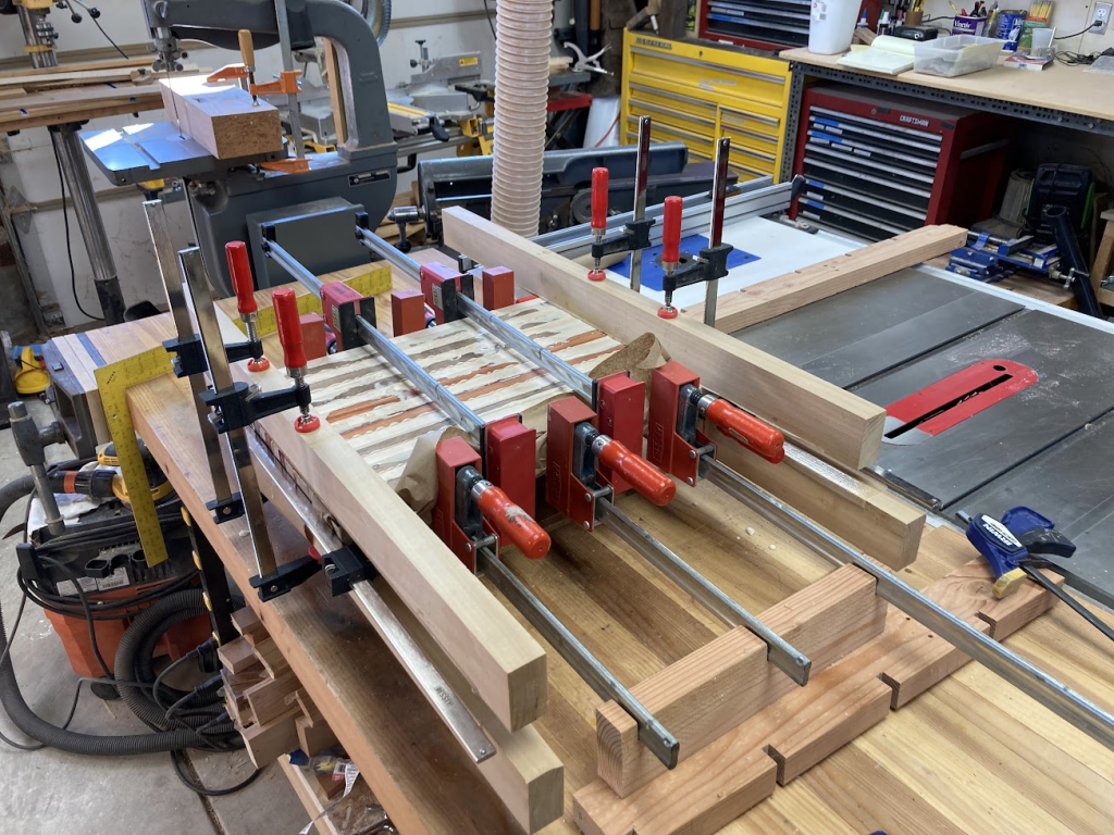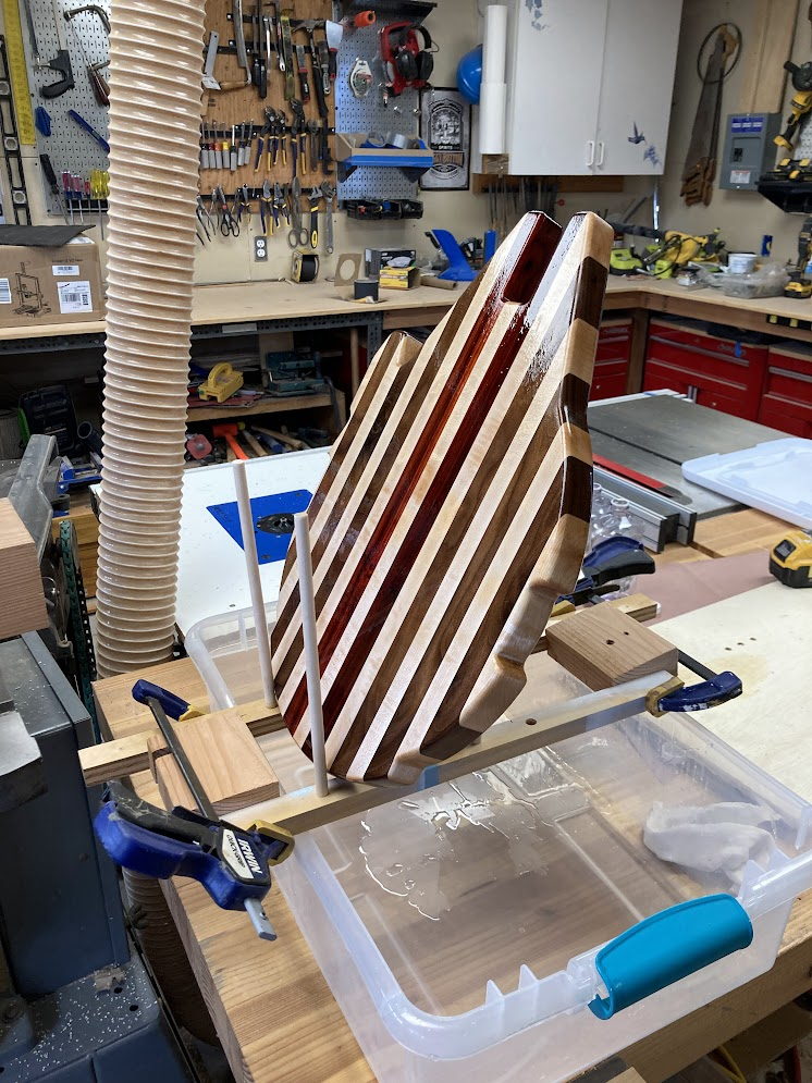 After the perimeter cut, corner rounding, and a lot of sanding, it was ready for its mineral oil soak and drip dry, and butcher block conditioner finish.
