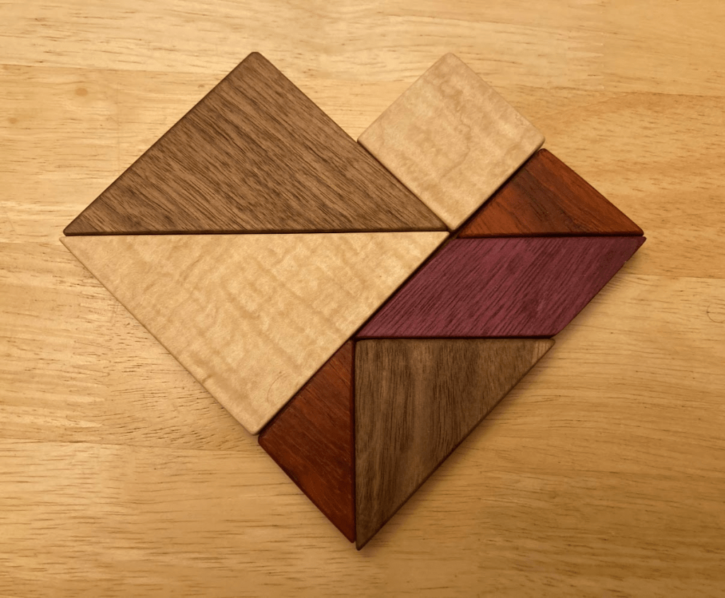 After gifting a couple of tangram sets for Christmas last year, one of the recipients asked to see the solutions to all of the engraved puzzles. Spoiler alert, here they are.
